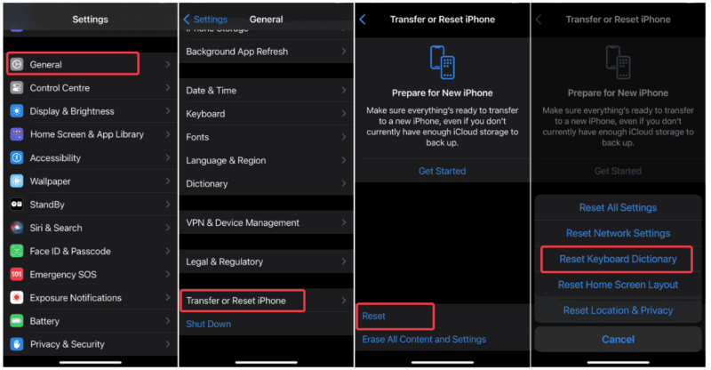 Reset iOS Keyboard Dictionary
